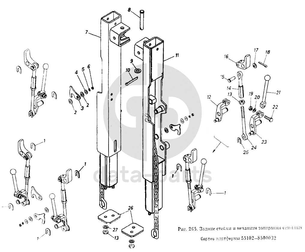 Задние стойки и механизм запирания основных бортов платформы 55102-8500032