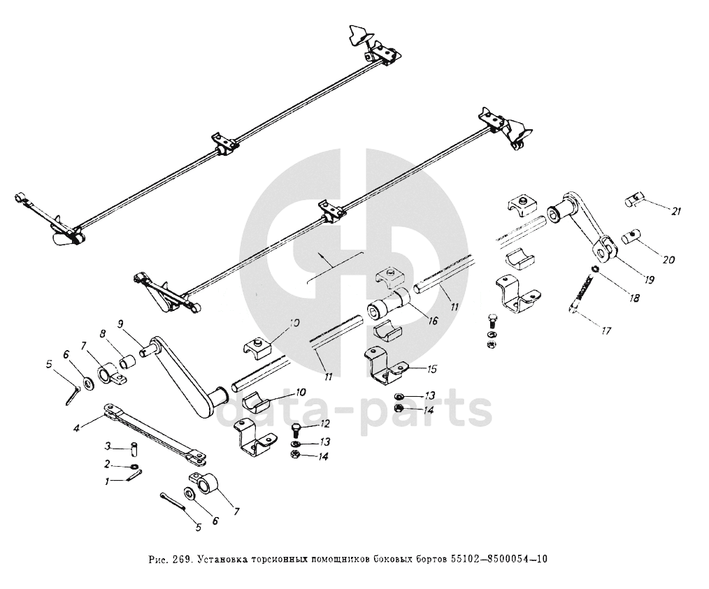Установка торсионных помощников боковых бортов 55102-8500054-10
