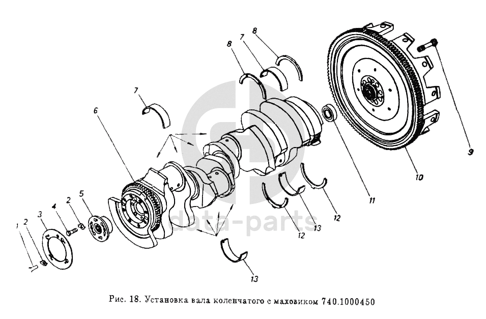 Установка вала коленчатого с маховиком КамАЗ-5511