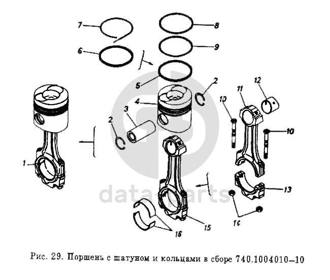 Поршень с шатуном и кольцами в сборе КамАЗ-5511