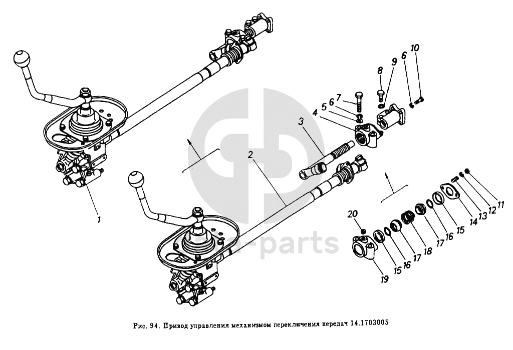 Привод управления механизмом переключения передач 14.1703005 КамАЗ-5511