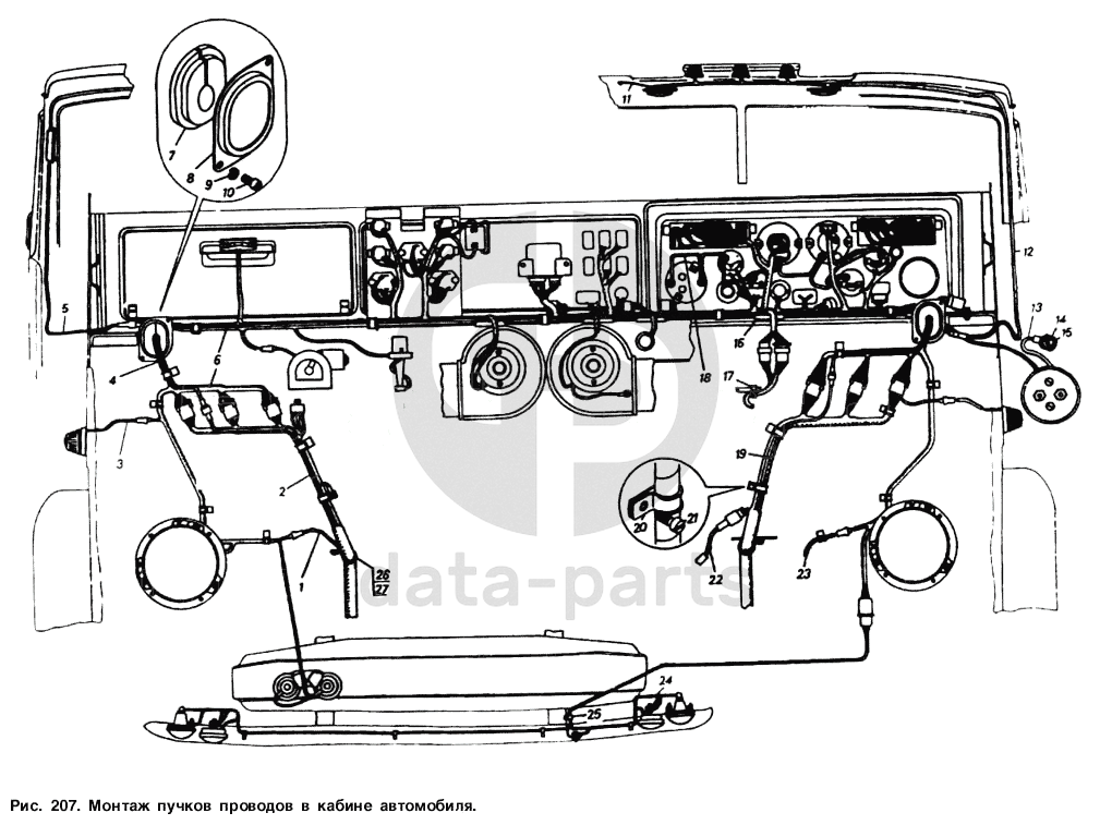 Монтаж пучков проводов в кабине автомобиля КамАЗ-5511