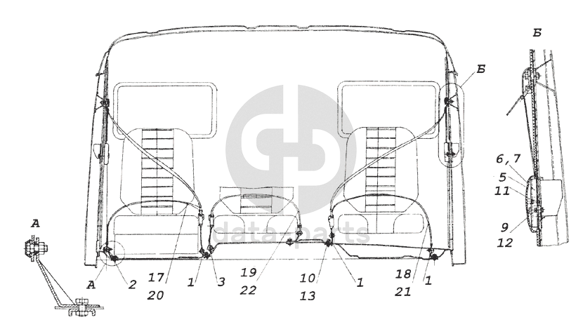 53205-5000075-10 Установка ремней безопасности КамАЗ-6350 (8х8)