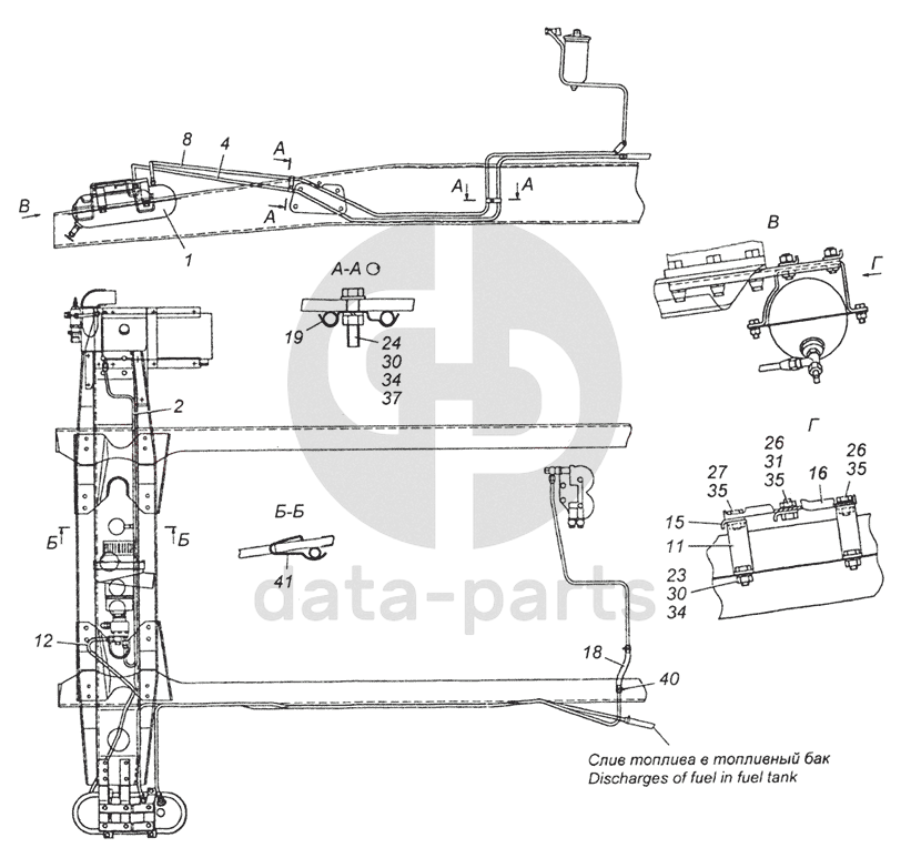 6350-1015017 Установка топливного бачка и топливопроводов предпускового подогревателя ПЖД-30 КамАЗ-6350 (8х8)