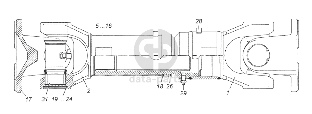 6350-2205011-10 Вал карданный среднего моста в сборе (сварка)