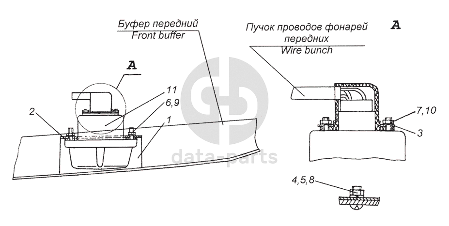 4310-3712001 Установка фонарей передних КамАЗ-6350 (8х8)