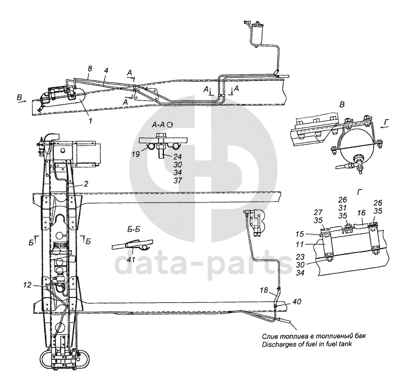 6350-1015017 Установка топливного бачка и топливопроводов предпускового подогревателя ПЖД-30 КамАЗ-63501 8х8
