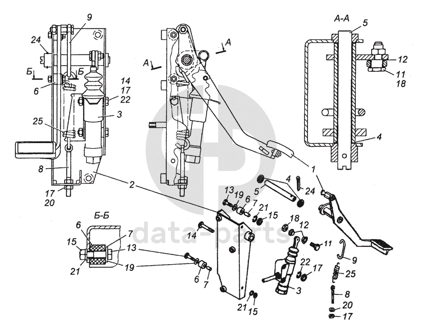 53205-1602008 Педаль сцепления с кронштейном и главным цилиндром в сборе