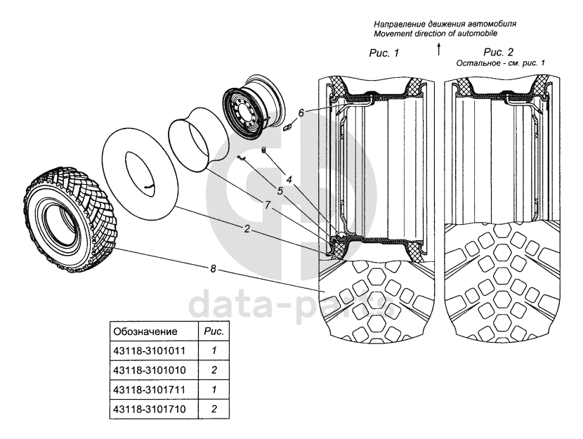 43118-3101011 Колесо с шиной левое КамАЗ-63501 8х8