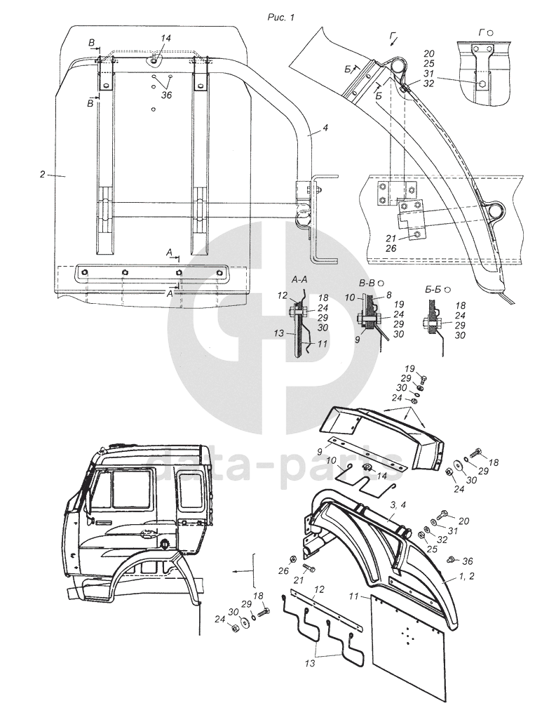 6350-8403009 Установка задней части переднего крыла КамАЗ-6450 8х8