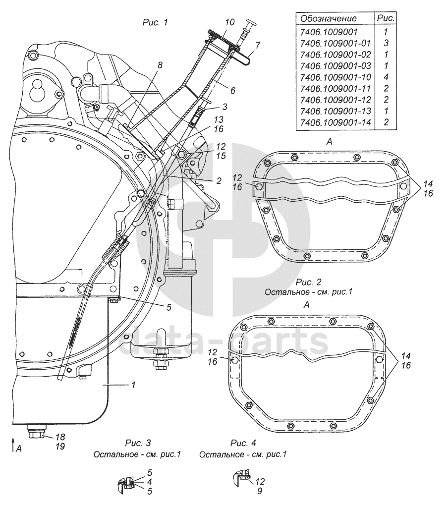 7406.1009001 Установка масляного картера, маслоналивного патрубка и указателя уровня