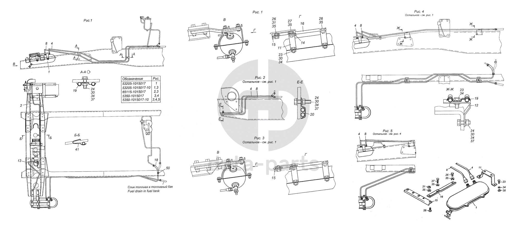 53205-1015017 Установка топливного бачка и топливопроводов предпускового подогревателя ПЖД-30 КамАЗ-6450 8х8