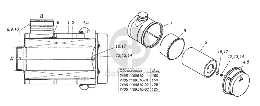 7405.1109510 Фильтр воздушный в сборе КамАЗ-6450 8х8