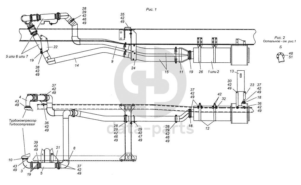 6350-1200001-10 Установка системы выпуска КамАЗ-6450 8х8