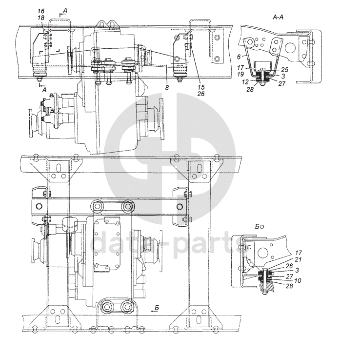 65111.1800008 Установка крепления раздаточной коробки КамАЗ-6450 8х8
