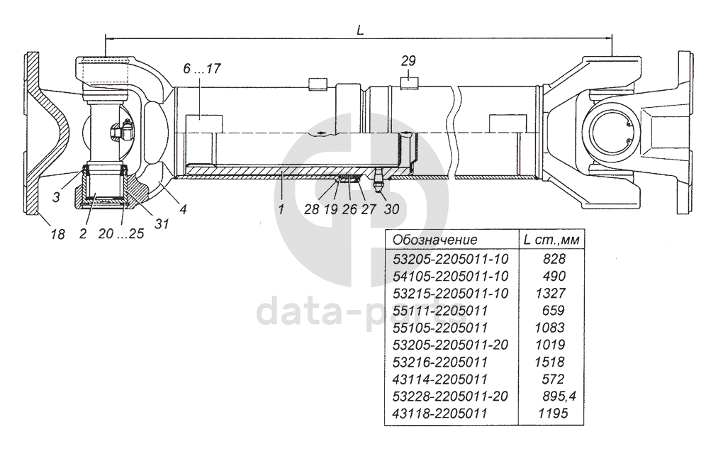 53205-2205011-10 Вал карданный среднего моста в сборе (сварка)