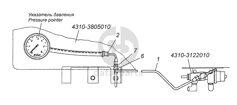 4310-3816001 Установка трубопроводов к шинному манометру КамАЗ-6450 8х8