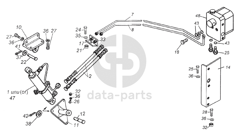 Шланг к цилиндру опрокидывающего механизма кабины в сборе