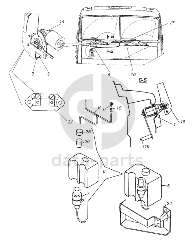 Установка стеклоочистителя и омывателя КамАЗ-6460