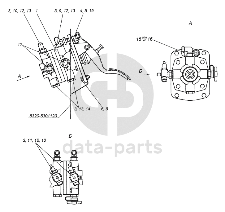 Кран КАМАЗ-ЕВРО тормозной 2-х секционный в сборе с педалью