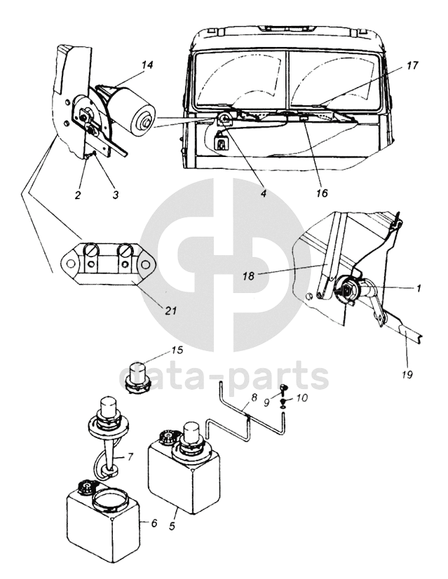 Стеклоочиститель и его привод. Насос водяной очистки стекла КамАЗ-65115