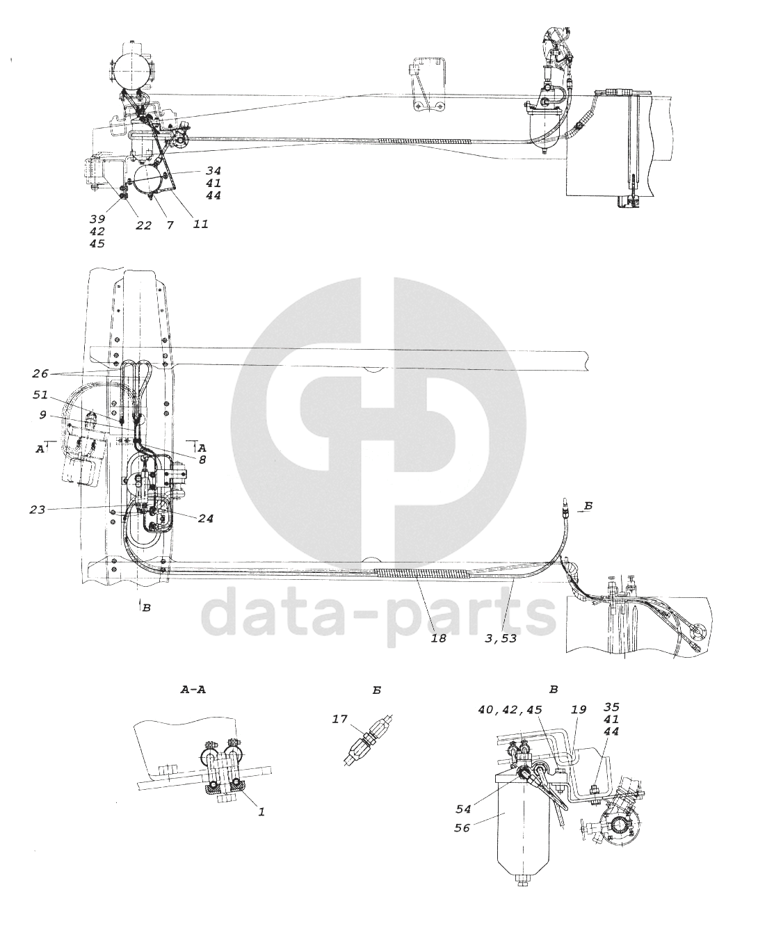 Установка топливного бачка и топливопроводов подогревателя 15.8106 КамАЗ-65116