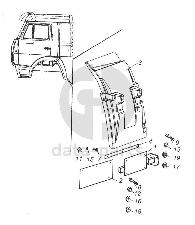 Установка задней части переднего крыла правая/левая КамАЗ-65116
