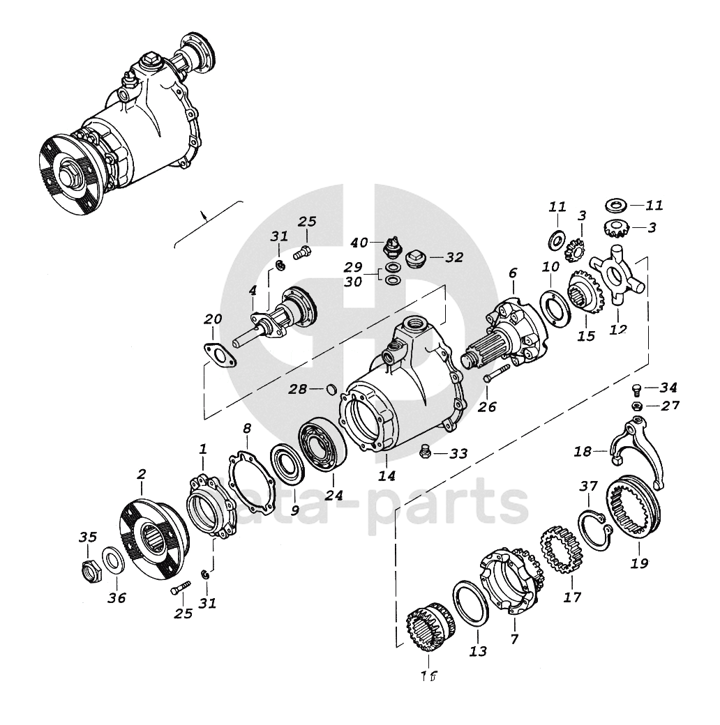 Муфта шестерни привода среднего моста межосевого дифференциала