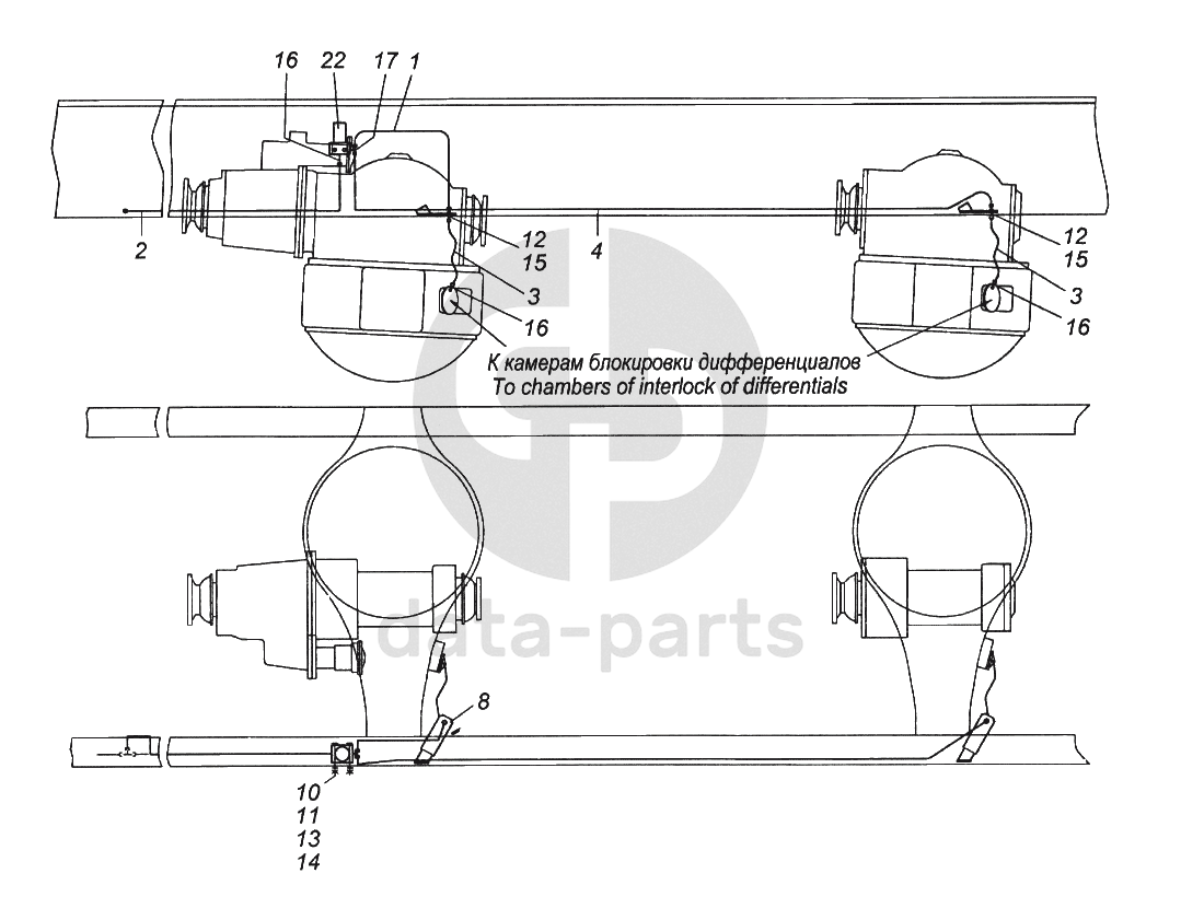 Привод блокировки межколесных дифференциалов КамАЗ-65116