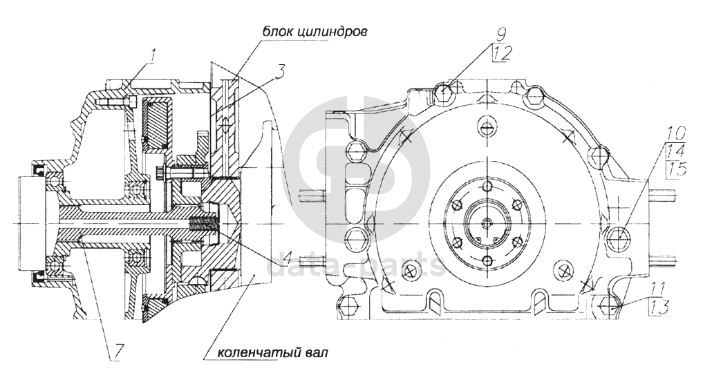 Привод КАМАЗ-ЕВРО-2 агрегата (передняя крышка двигателя) в сборе