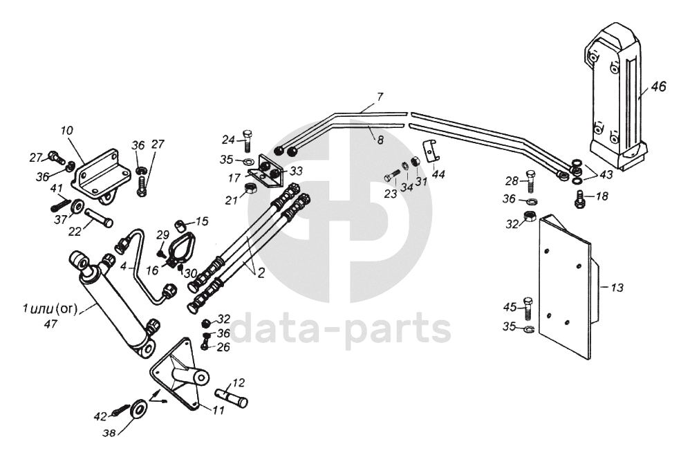 Шланг к цилиндру опрокидывающего механизма кабины в сборе