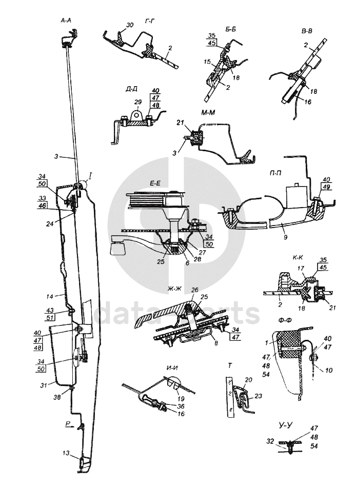 Держатель нижнего уплотнителя опускного стекла