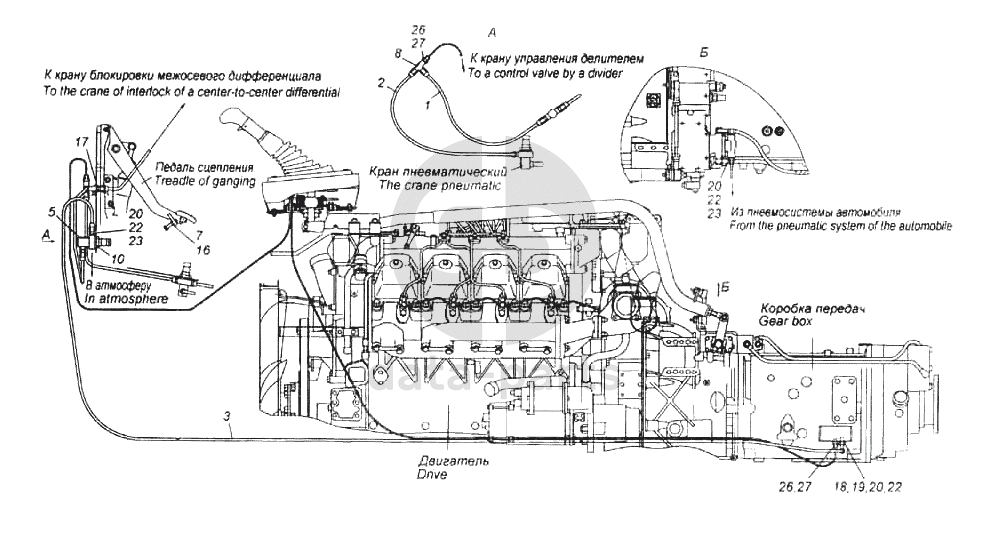 Установка пневмопривода управлением переключения передач КамАЗ-6522