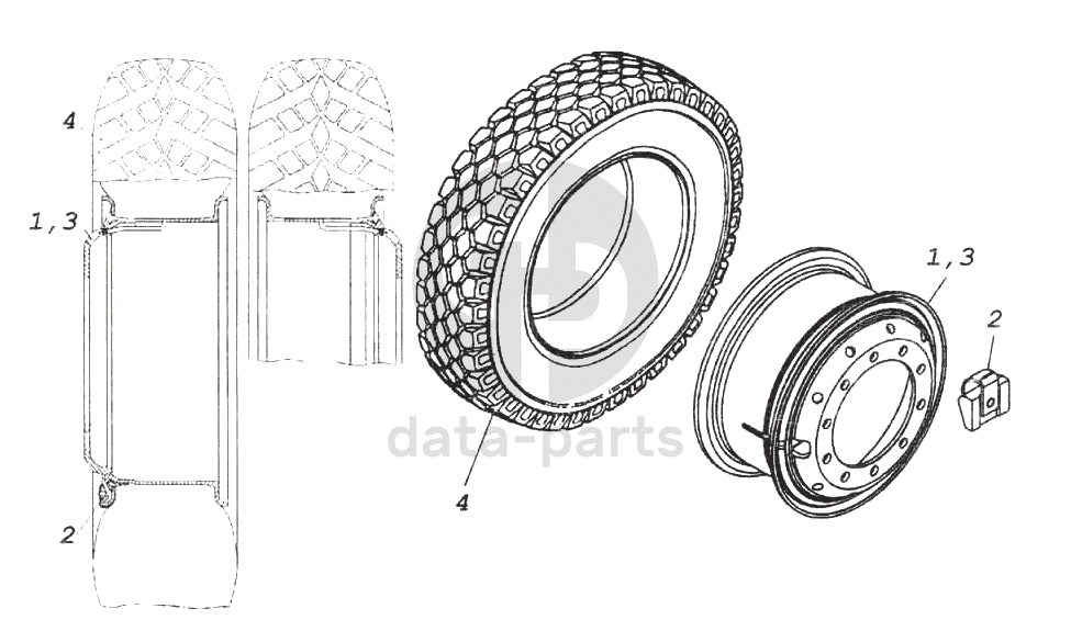 Колесо 8,5-20 с шиной левое КамАЗ-6522