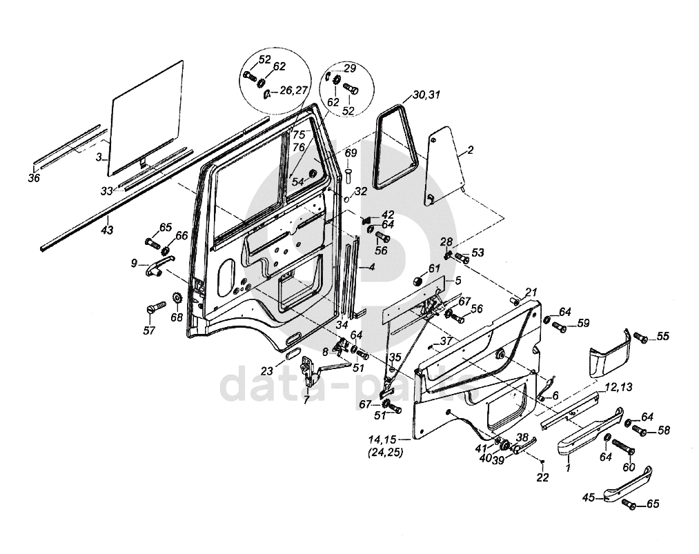 Установка стекол и арматуры двери левая КамАЗ-65226