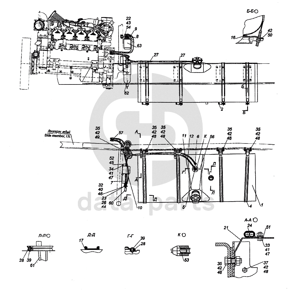 Установка топливного бака, ФГОТ и топливопроводов КамАЗ-65226