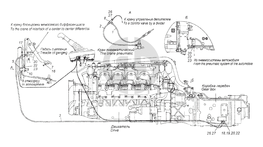 Установка пневмопривода управлением переключения передач КамАЗ-65226
