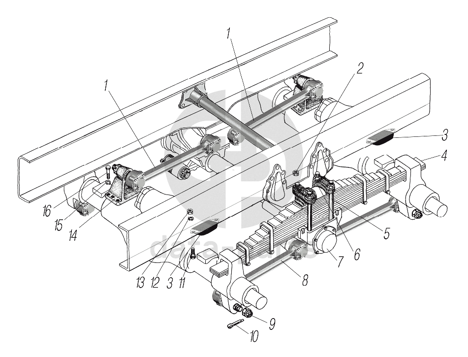 Ось УРАЛ балансира с кронштейнами и балансирами в сборе