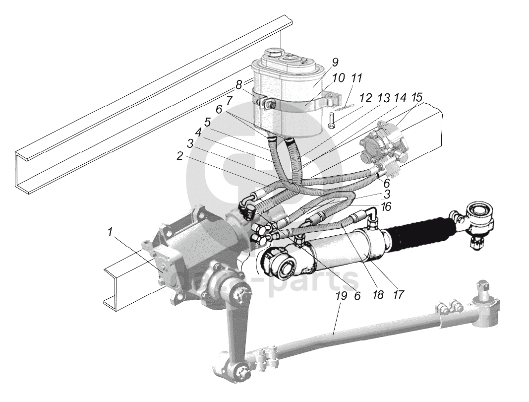 Гидроусилитель руля УРАЛ в сборе усиленный палец (с 2003г.)