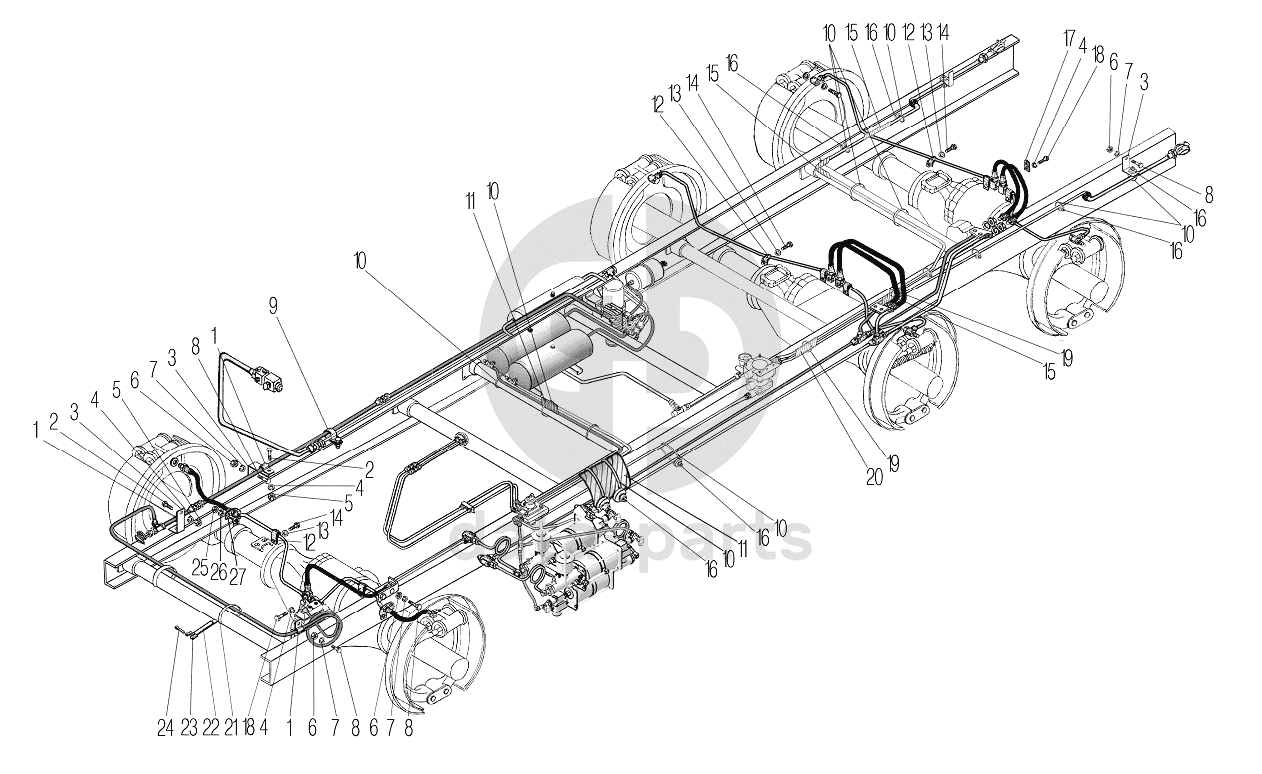 Крепление трубопроводов и шлангов пневмогидравлического привода рабочих тормозов