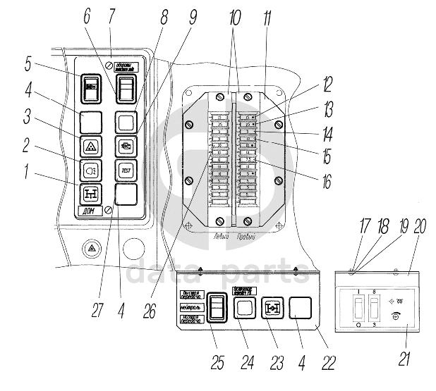 Щитки выключателей и блоки предохранителей УРАЛ-4320-1958-70И