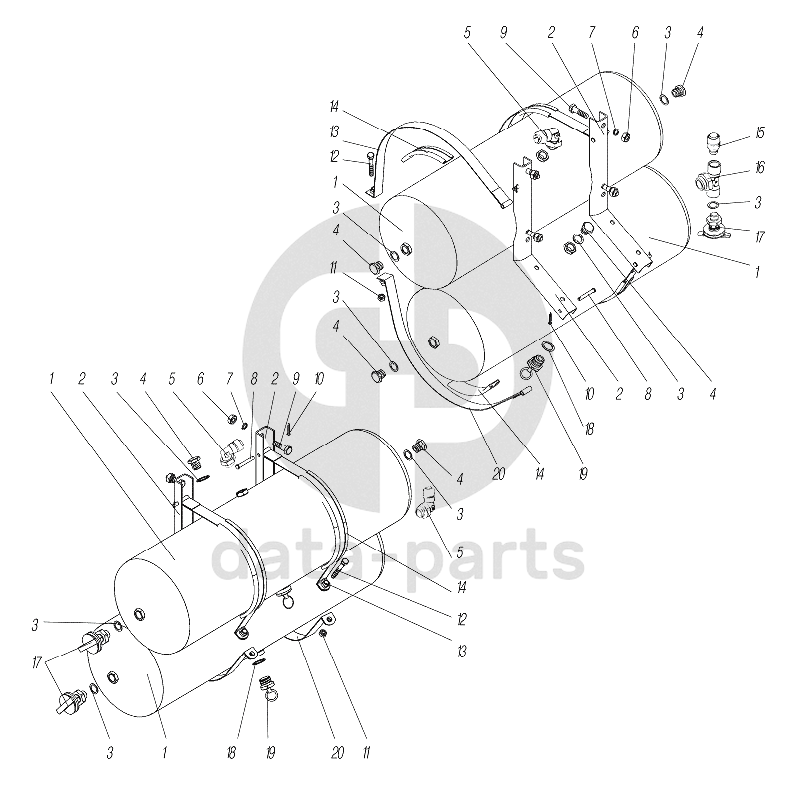 Установка воздушных баллонов на правом и левом лонжеронах УРАЛ-4320-6951-74
