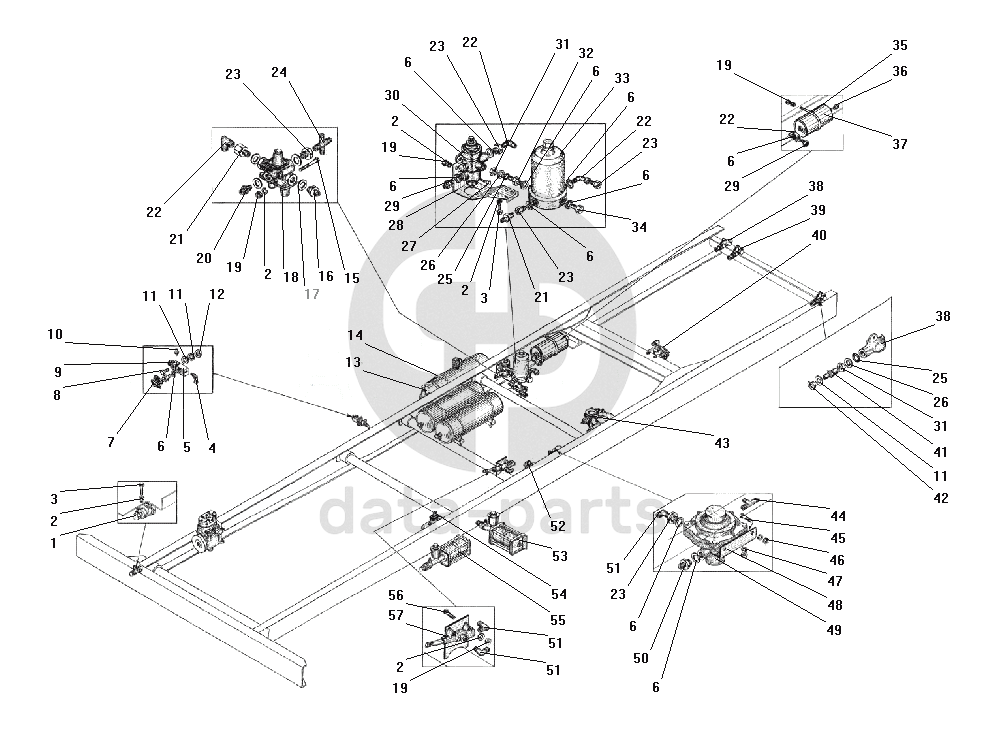 Установка агрегатов гидропневматического привода рабочих тормозов УРАЛ-43203-10