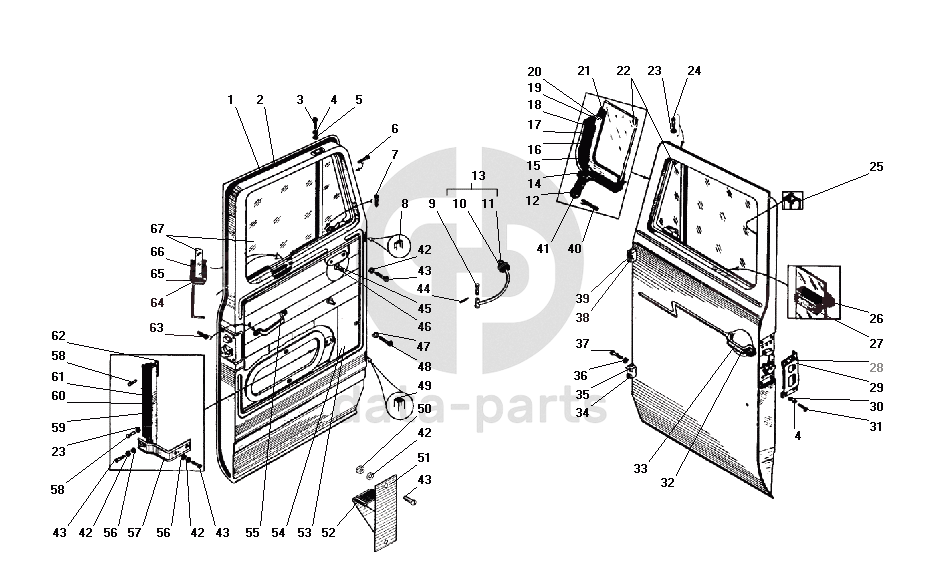 Стеклоподъёмник в сборе правый (П-образный) старого образца