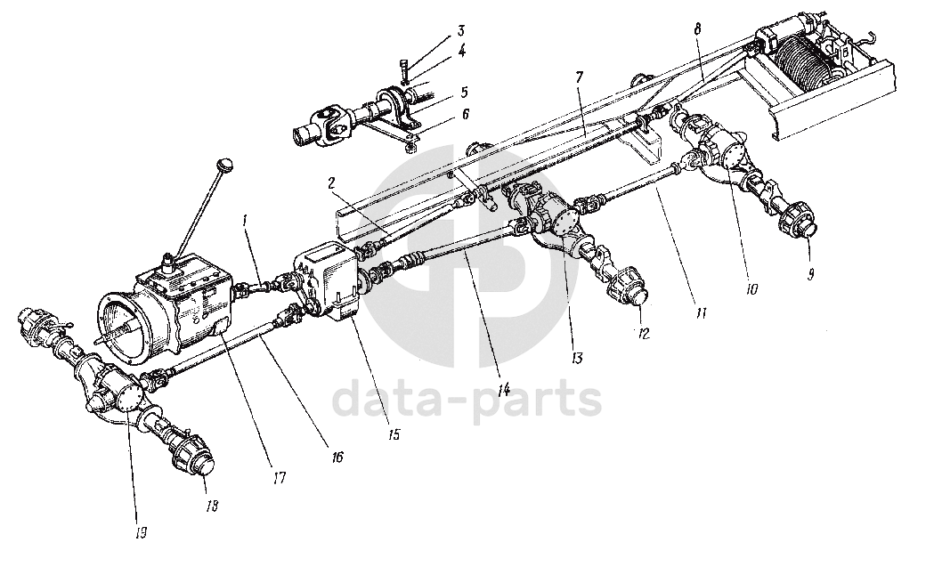 Схема расположения карданных валов автомобиля Урал-4320 УРАЛ-4420