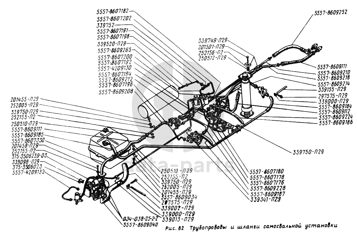 Трубопроводы и шланги самосвальной установки УРАЛ-5557