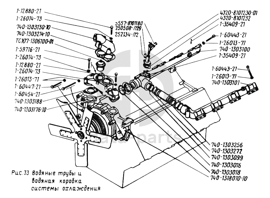 Водяные трубы и водяная коробка системы охлаждения УРАЛ-5557