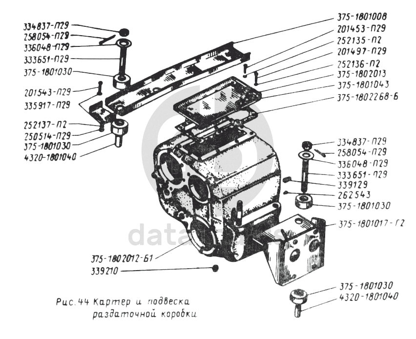 Картер и подвеска раздаточной коробки УРАЛ-5557