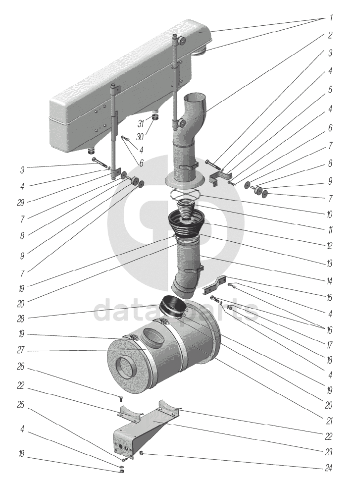Воздуховод УРАЛ от мультициклона к фильтру воздушному