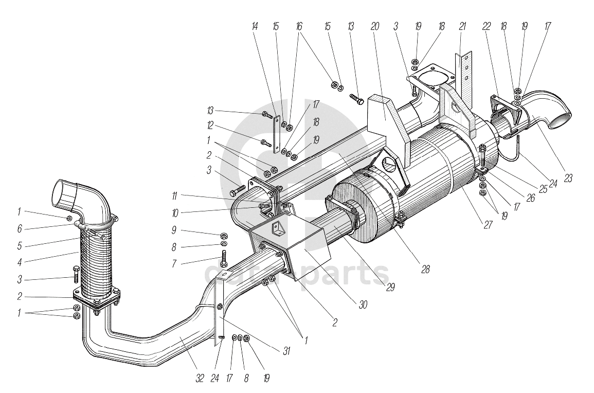 Система выпуска газов с обогревом кузова УРАЛ-6370-1151